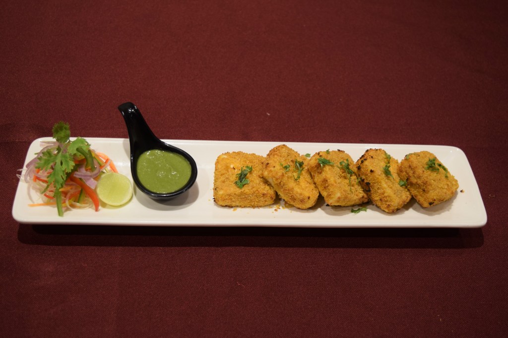 - Repeat for all the paneer cubes, till the time crushed flakes will not coated well.