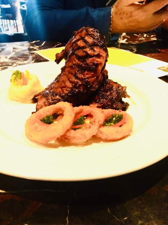 - On large platter, arrange 4 groups of 2 plantains parallel around edges. Place 3 chicken pieces in center of each plantain group with bowl of Mango Cilantro Cream Sauce in center. Place scallions, white side down, in sauce. Divide plantain groups with mango wedges, garnish with cilantro and chopped green scallion tops. its my personal favorite dish of all time.