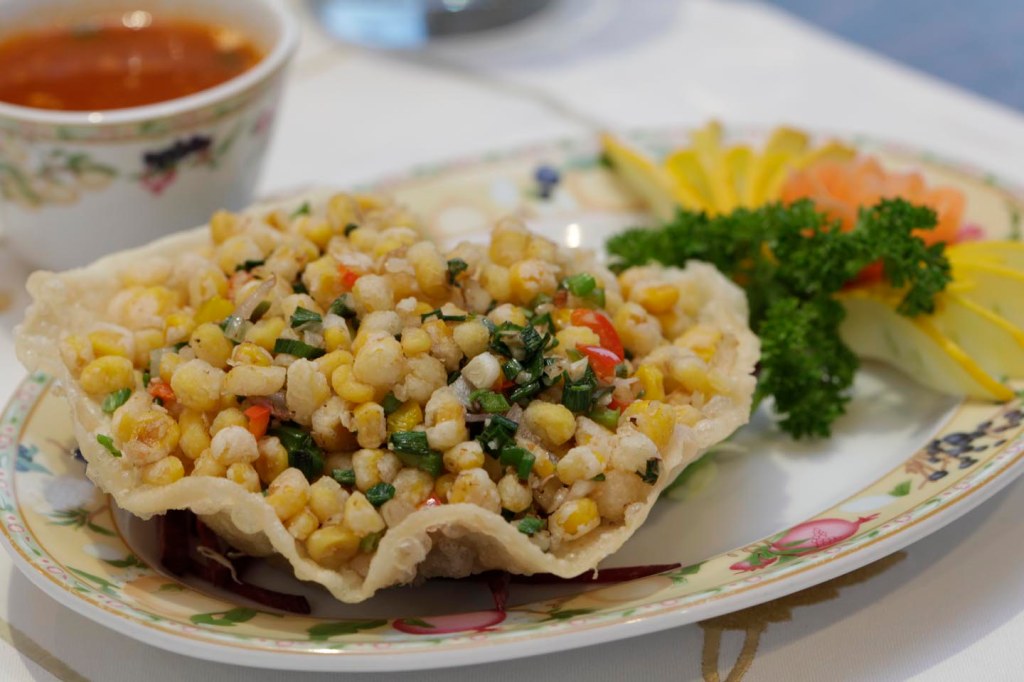 Deep fry the corn kernels as coated it well with corn flour well in advance. Mix them in a peppery chopped ingredients, just before serving.