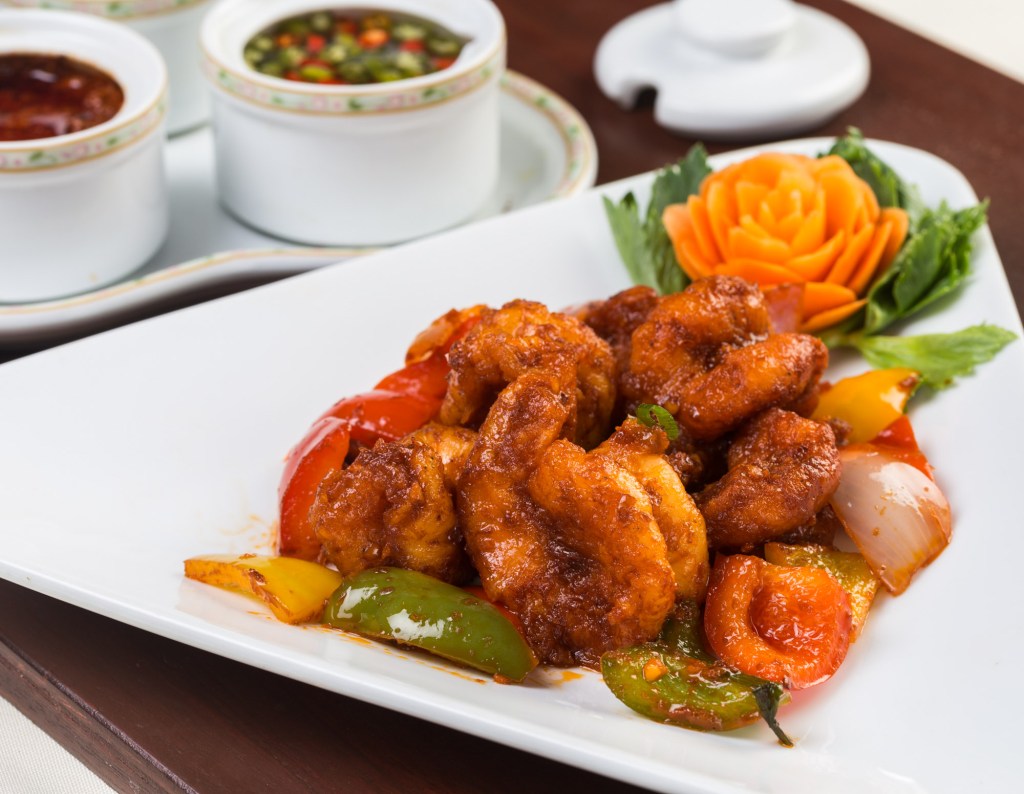 Cook the prawns 2-3 minutes in the hot oil and add the capsicums and onion, cook for another minute. Don’t over-cook.