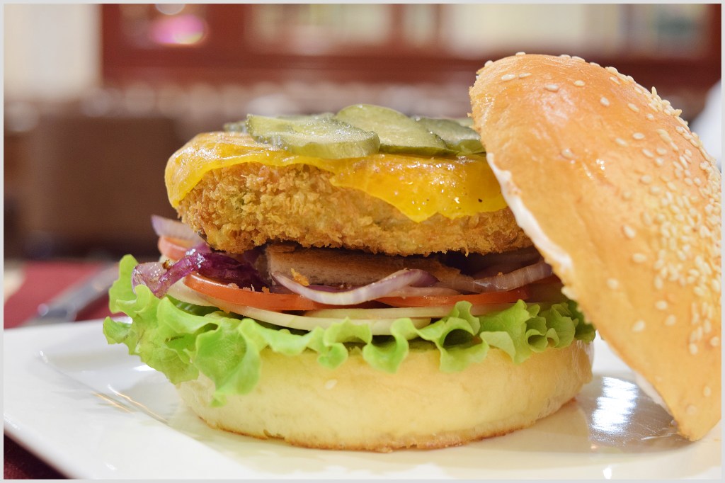 - Stack lettuce, coleslaw, chicken burgers, avocado, red onion, jalapeño, and more coleslaw on top of bottom buns. Close sandwiches with top buns.