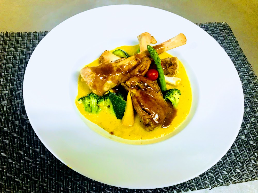 - Arrange meat on plates and drizzle with sauce. Spread with pumpkin and serve garnished with cherry tomatoes or the choice of your garnish.