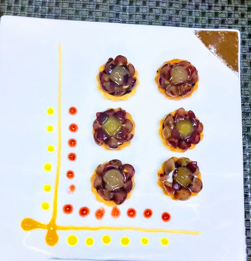 In the above recipe i have taken individual tart shells and stuffed with grapes and walnuts, its up to you how you want to do the decoration, or want to present the recipe.