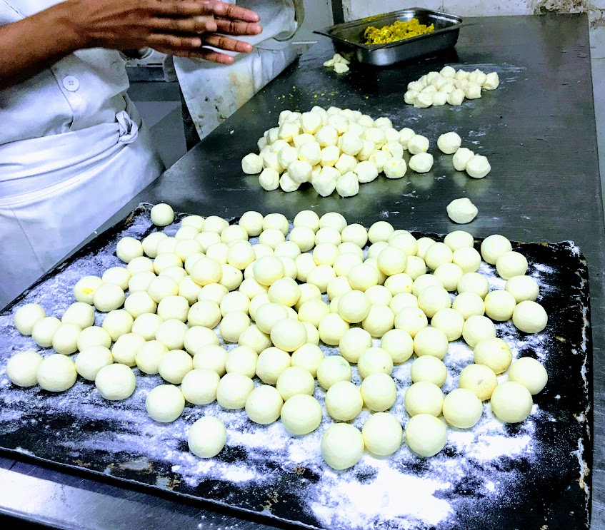 - Just gently mix. If you are unable to form balls or if the mixture appears dry, then add a few teaspoons of milk. Cover the dough and keep aside for 30 mins.