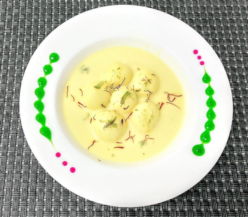 Soak saffron in two tablespoons of warm milk and set aside. Boil half litre of milk. As it comes to a boil add lemon juice and keep stirring till all the milk curdles.