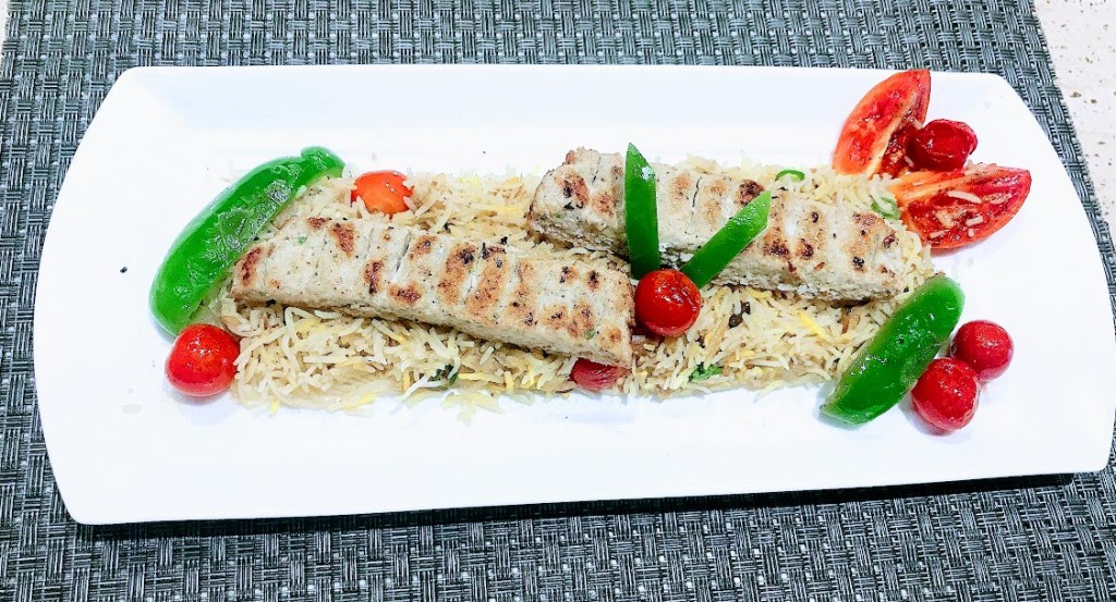 - Place the basmati rice on a serving dish and placed the kebab on the bed of the rice, served hot with your choice of salad and sauce. you can have it along with lavash bread as well.
