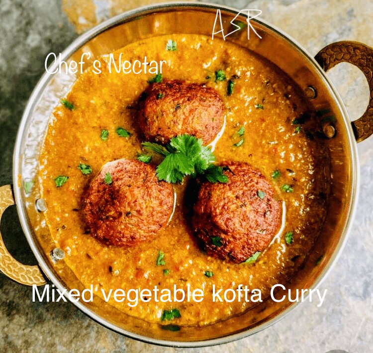 In this heavenly dish. Deep-fried mixed vegetable balls served with a smooth and delicious rich gravy with dry fruits paste and aromatic herbs based curry a mixed vegetable kofta curry requires a bit of preparation to cook. It is an ideal dish for a party or a special Sunday lunch. Melt in the mouth koftas along with the silky spicy gravy taste just as great with rotis/Naan/ parathas as they do with rice and as per your liking of pulao.