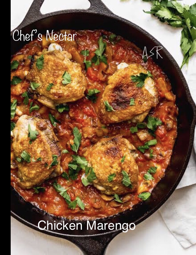One of my favorite dish, Chicken Marengo is a French dish named after the battle of Marengo ! a victory for Napoleon. Traditionally the dish is served with a garnish of fried eggs and shrimp or crawfish; however, more recipes today, such as this one, usually omit these ingredients. it’s a flavorful combination of boneless chicken breasts, tomatoes, mushrooms, and some wine. The chicken is simmered to perfection with the vegetables and sauce, and the dish takes no more than one hour to prepare and cook. Serve this tasty chicken and tomato dish with hot cooked pasta or noodles and a salad for a fabulous meal.as per you choice and likings ❤️👌😘