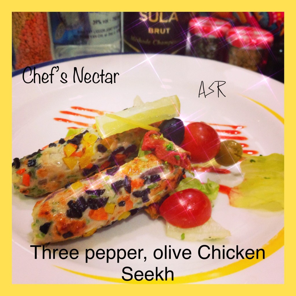 Ingredients for making the three peppers, olive Chicken Seekh😋