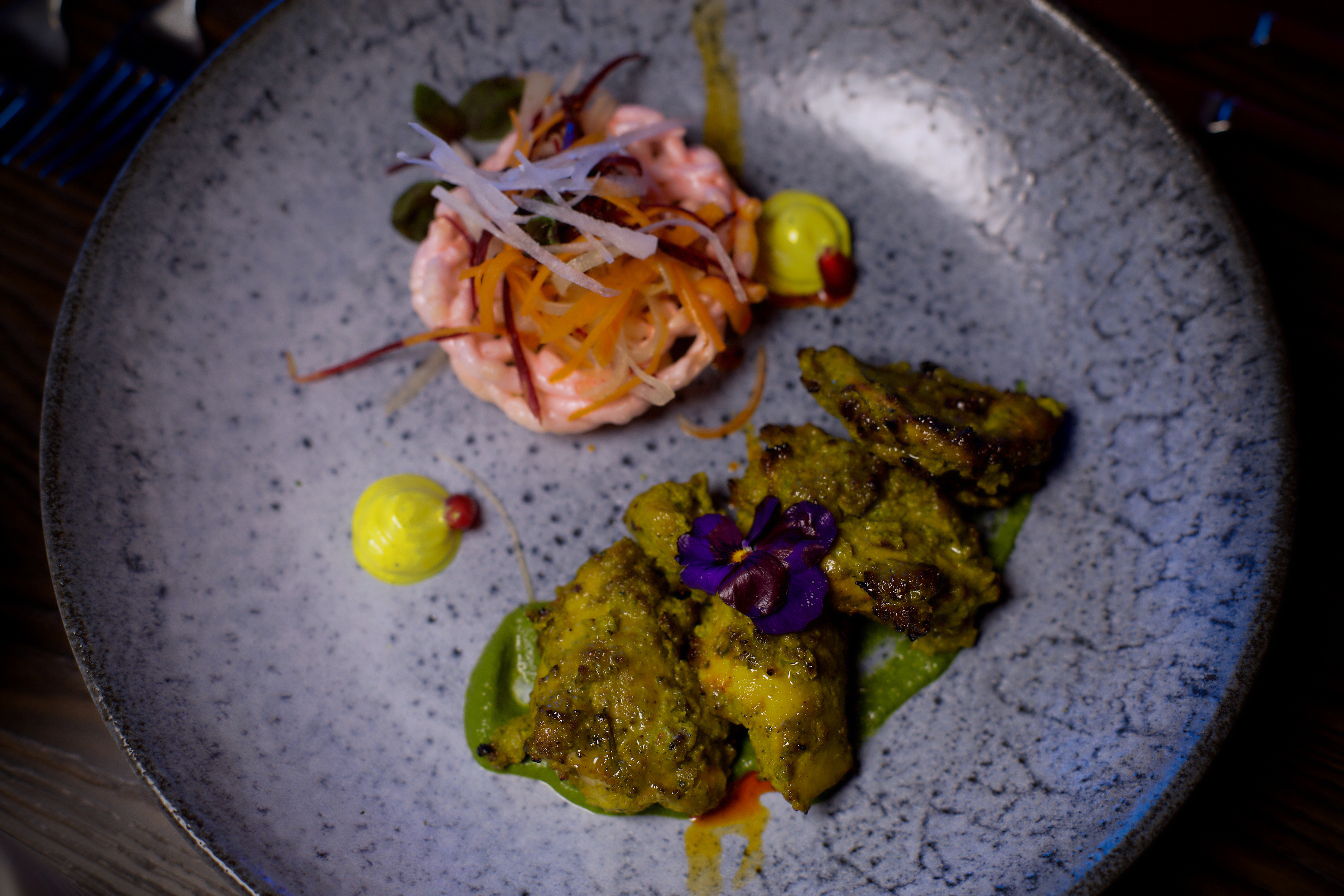 In a bowl whisk hung curd with a betel leaf paste, cashew nut paste, ginger garlic paste, kewra