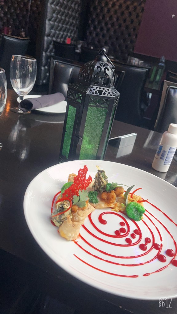 Savory shrimp and fresh baby spinach fried with granulated garlic powder and black pepper powder.my personally favorite red wine 🍷
