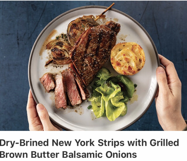 Remove onions from grill. Carefully remove onions from skewers and place in serving dish. Top with remaining brown butter balsamic mixture and serve with steaks.